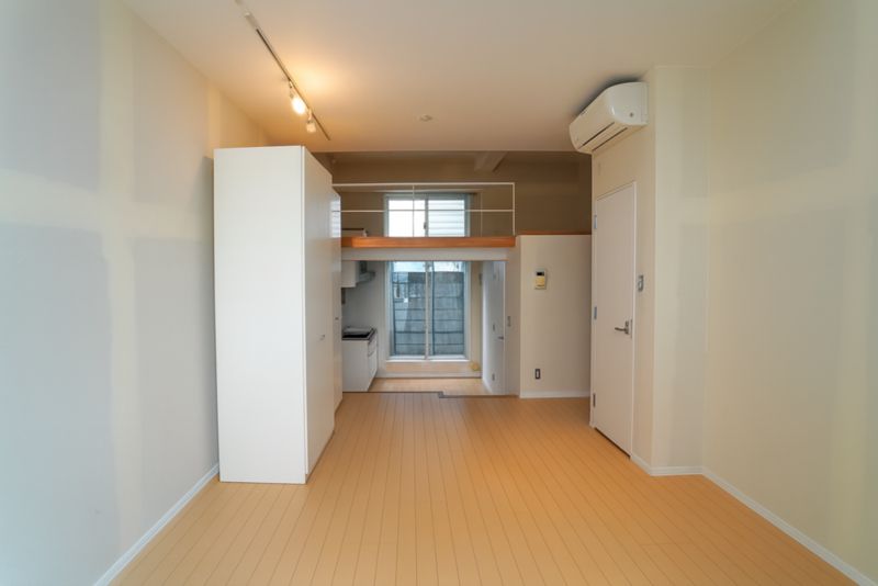 当室は1階の42㎡弱ほどのワンフロアでSOHO利用に適した1kプラン。