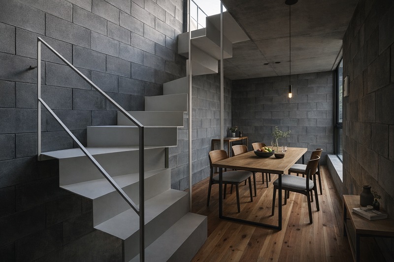 今回募集のお部屋は、1階にアトリエ(ミニガレージ)とバス・トイレ、2階にダイニングとキッチン、そして3階にベッドルームと専用ルーフバルコニーを置いた3層トリプレットプラン。