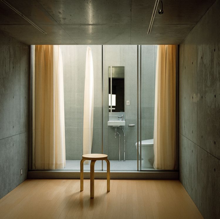 恵比寿ガーデンプレイス至近。細村研一氏(Studio h+)設計のデザイナーズ集合住宅。ガラス張りバスルームとトップライトが印象的な半地下ワンルーム。SOHO利用や個室サウナ設置相談も可能。