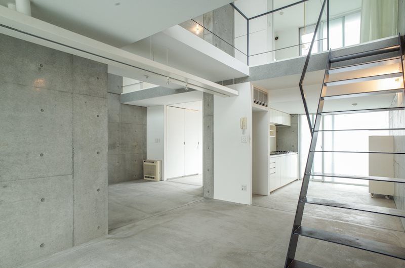 神楽坂・牛込エリアに佇む北山恒氏設計のデザイナーズメゾネット。水盤の中庭を備えた静謐な住まい。SOHO・オフィス利用可、床暖房付きモルタル床のスタイリッシュ空間です。