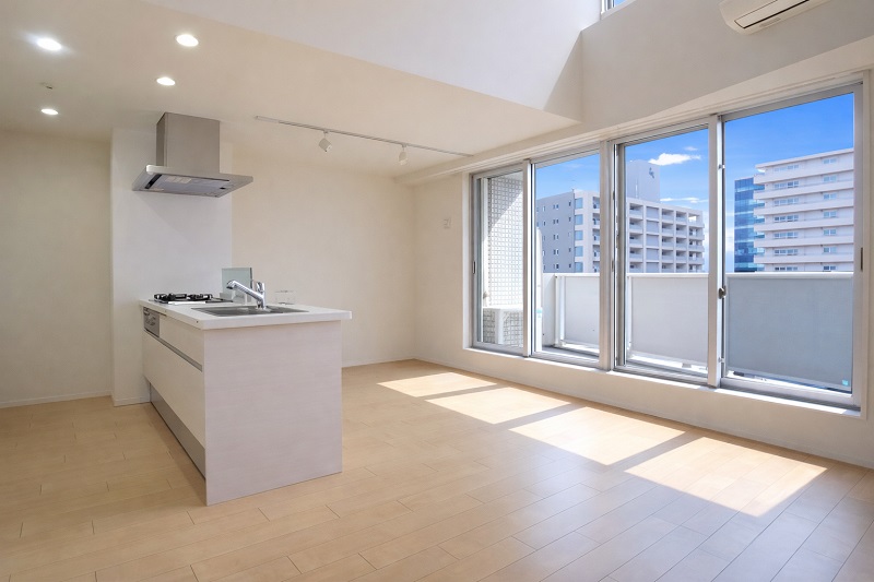今回募集のお部屋は、住居棟最上階93㎡弱ある広いメゾネットの1LDKプランです。
