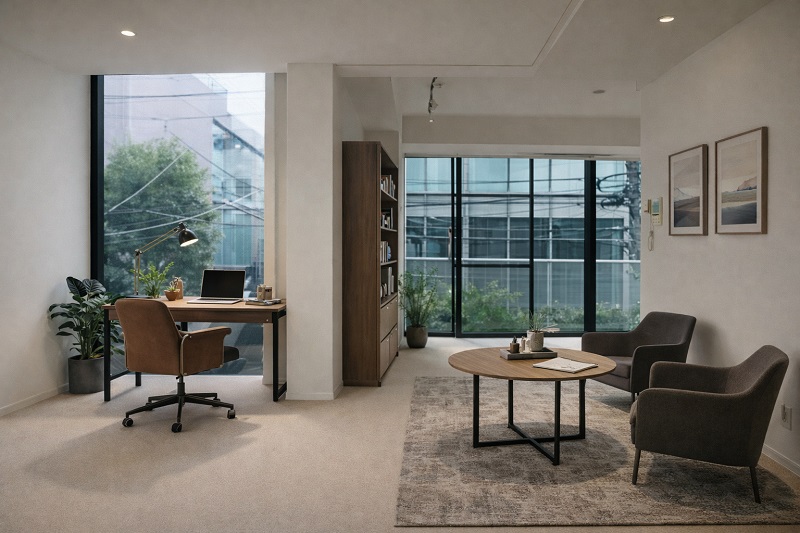 港区南青山、みゆき通りと骨董通りの間に位置し、根津美術館の緑を身近に感じるデザイナーズ物件。約54㎡のワンフロアは間仕切りのない設計で、住居・SOHO・事務所・サロン・教室など多用途に対応。洗練されたデザインと落ち着いた環境を兼ね備えた、南青山らしい一室です。