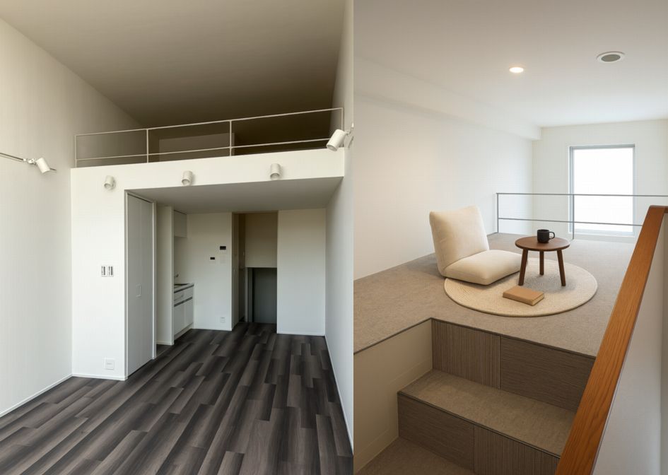 2-3階に至るメゾネットの当室は、専用のルーフバルコニー(5.49㎡)が付いた66.81㎡(ルーフバルコニー除く)の2LDKプラン。