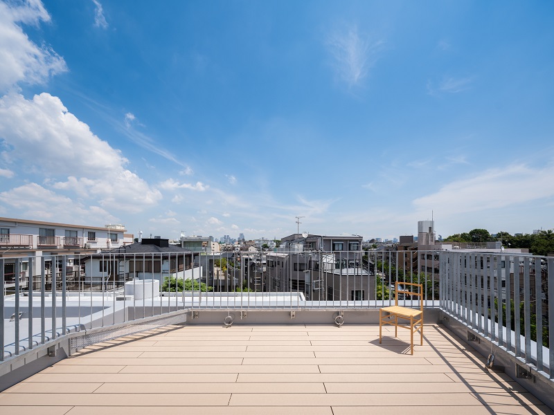 永福町駅利用。大宮八幡の緑に寄り添う、都市・森林・農地を融合した思想的デザイナーズ。木々が四季で環境を整える中庭を配置。約50㎡の開放的なワンルームに専用ルーフトップ付きの一室です。
