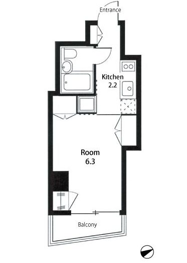 今回募集のお部屋は、キッチンと水廻りを入口部分の集約し、お部屋の使える部分を効率よくとった6階の1Kプラン。※写真は反転タイプのものになります