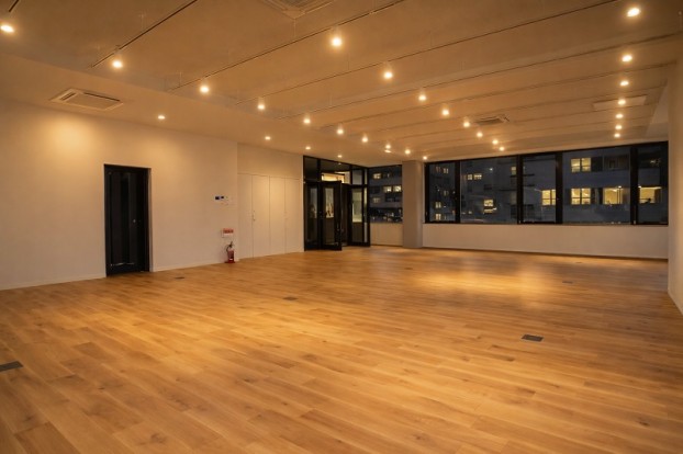 ゆとりある高い天井と無垢フローリング、3面パノラマ採光の横連窓などクリエイティビティを生み出すオフィス空間に仕上がっています。