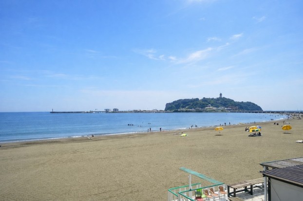 藤沢市片瀬海岸。江の島や富士山を望む雄大な景観のもと、年間を通じて観光やマリンスポーツを楽しむ人で賑う日本屈指のリゾート地です。