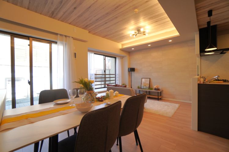 南東向きのL字バルコニーや専用庭(約22㎡)を備え、リビングからそのままアウトドアリビングへとつながる贅沢な設計です。