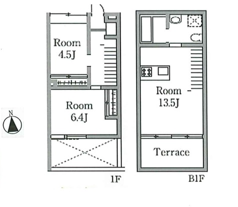 今回募集の住戸は、地下にオープンキッチン付きリビング、1階に2部屋を備えた60㎡の2LDK。