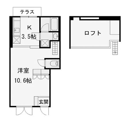 ご紹介のお部屋は1階部分、オートロックを通ってスムーズにアクセスできるロフト付きワンルームプランです。