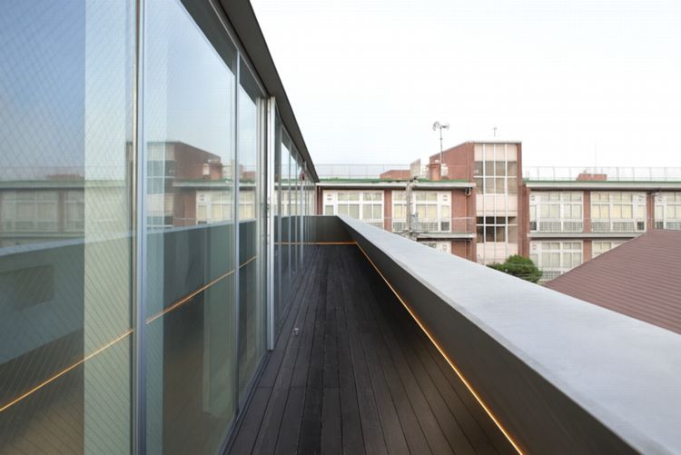 敷地は三方を道路に囲まれ、残る一方も避難通路のため、周囲との距離を十分に確保。建物全体をテラスがぐるりと取り囲む設計で、光と風が心地よく巡ります。