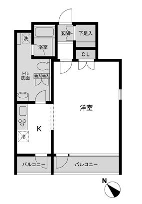 当室は46.62㎡をゆったり1Kでまとめたワンフロアプラン。