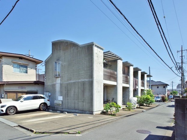 DIK設計室による当物件は、西武新宿線・花小金井駅から徒歩10分。静かな郊外住宅地にありながら、記憶に残る丸屋根が印象的な5棟のテラスハウスです。