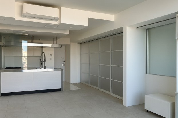 恵比寿駅からのアクセスが良い渋谷区広尾に建つラグジュアリーなデザイナーズマンション。当室は開けた眺望が得られる6階60㎡超のお部屋です。