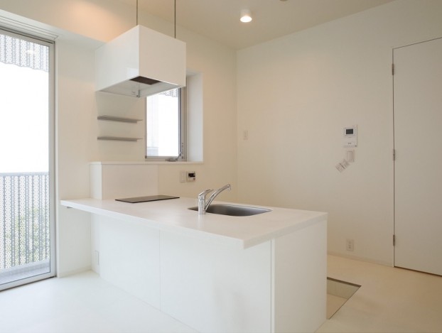 6.2帖と4.6帖に分けられる白基調の空間に、IH2口のカウンターキッチンを備え、2面採光と広めのバルコニーが心地よい風を導きます。