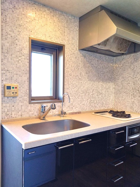 ロケーションに似合うデザイン性の高いリフォームが施され、ディスポーザーや浄水器、収納カウンターを備えた使い勝手の良いキッチンも魅力です。