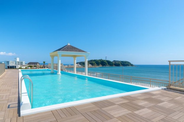 外観や共用部には非日常感が漂い、屋上プールに屋内プール、ゲストルームやサウナ、サーフボード置場など、海辺の暮らしを満喫できる設備が整っています。