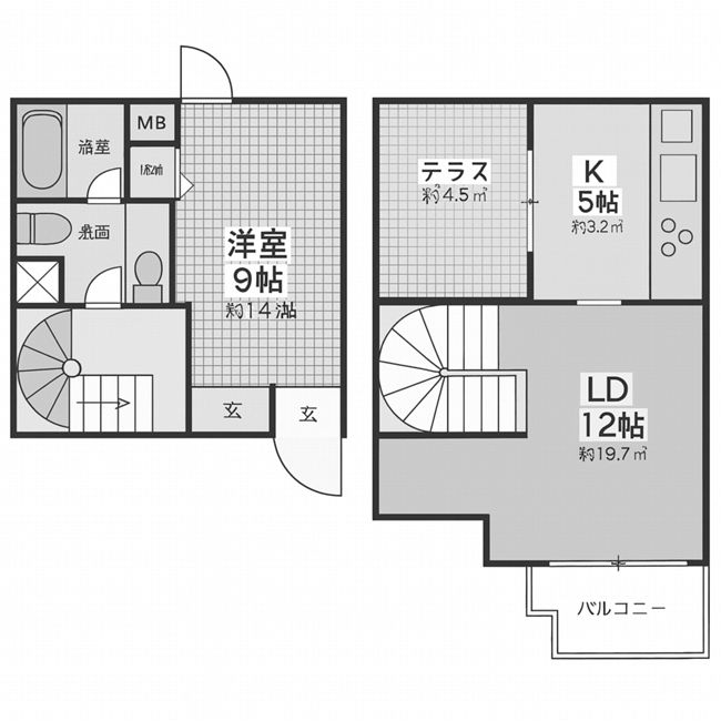 今回ご紹介のお部屋は、1階-B1階の広いメゾネットプラン。地階といっても中庭に面していますので、ワンちゃん飼育などの際には重宝いただけるとも思います。