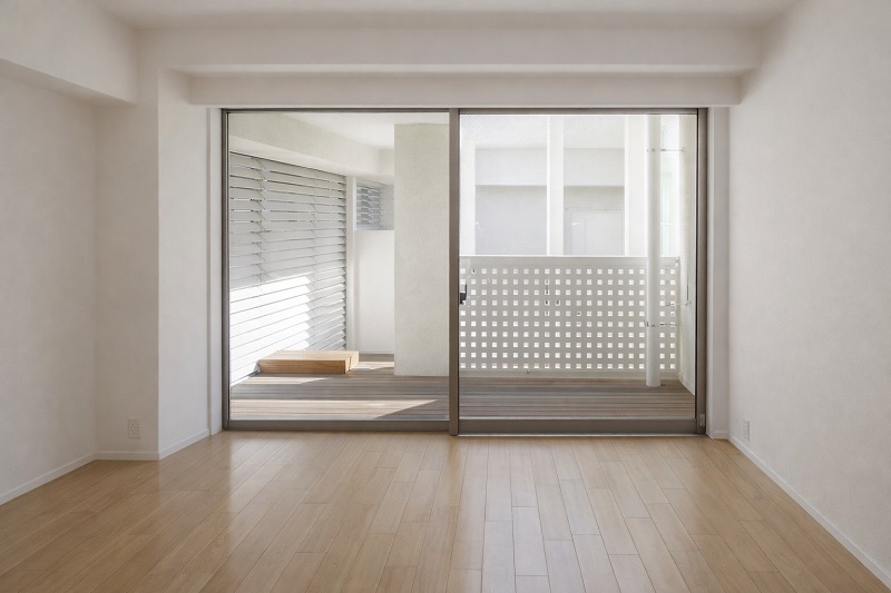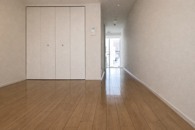 広さは55㎡弱ほどですが、それ以上に大きな窓から開放感が感じられる空間のお部屋です。