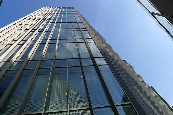 ガラス張りの外観は洗練された都会のオフィスなのですが、こちらに隠れた住居棟が存在しているのです。