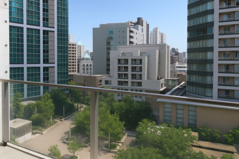 目の前は高層建築物とその広場が開けており、都会の眺望が開けています。ベンチシートになった広いバルコニーで友人たちとホームパーティーなども良さそうです。
