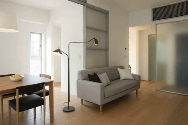 ウォークインクロゼット付きの寝室はやや小ぶりですが、半透明の引き戸によってリビングとの空間を自由に分けられます。