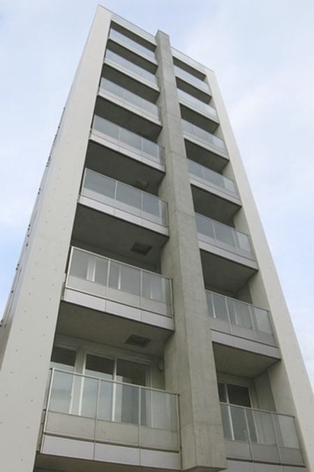 9階建ての中層タイプの建物は、外観からスタイリッシュなイメージで、建物前が遮るものが無い広場になっており、お部屋には陽光が降りそそぐ恵まれたロケーションに建てられています。