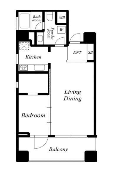 白金高輪駅目の前の好立地に建つデザイナーズマンションの1LDKプランです。