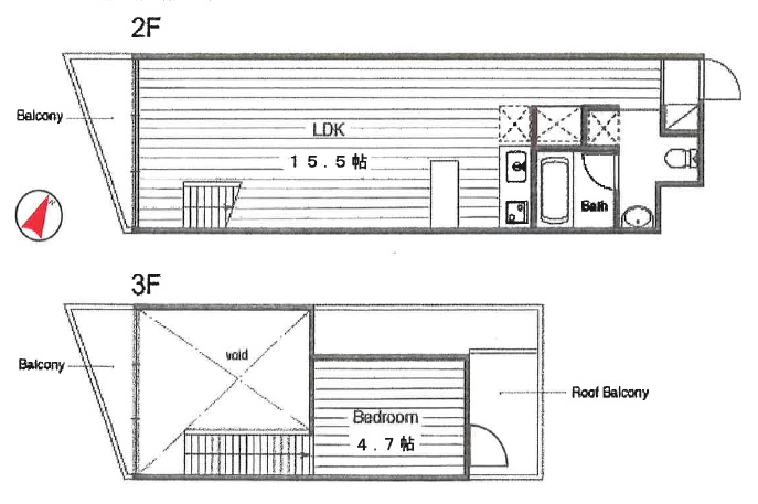 当室は、2-3階にわたる47.53㎡、1LDKのメゾネットプランです。